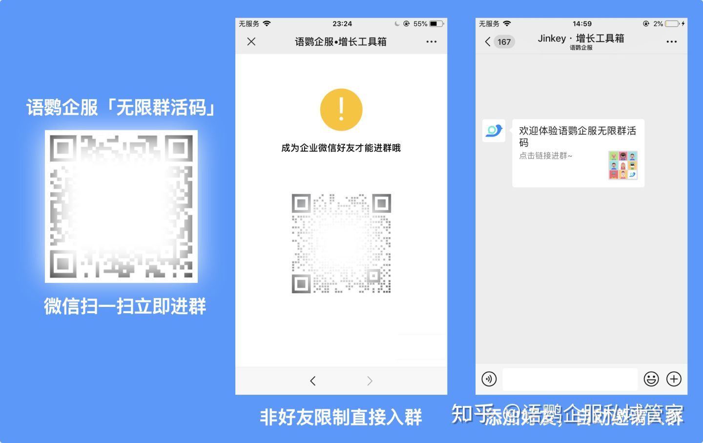 如果担心直播带来过大的客流量会增加频繁更新群二维码链接的工作量,这时不妨可以试试使用语鹦工具箱里的「无限群活码」功能,可以在人满后自动建新群,且群个数不受限的同时,还可以做到新客户先添加好友再进群,老客户扫码直接进群,把流量通通框进企业的私域流量池里。