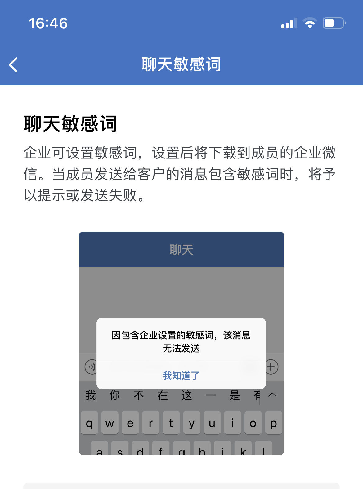 企业微信敏感词拦截: