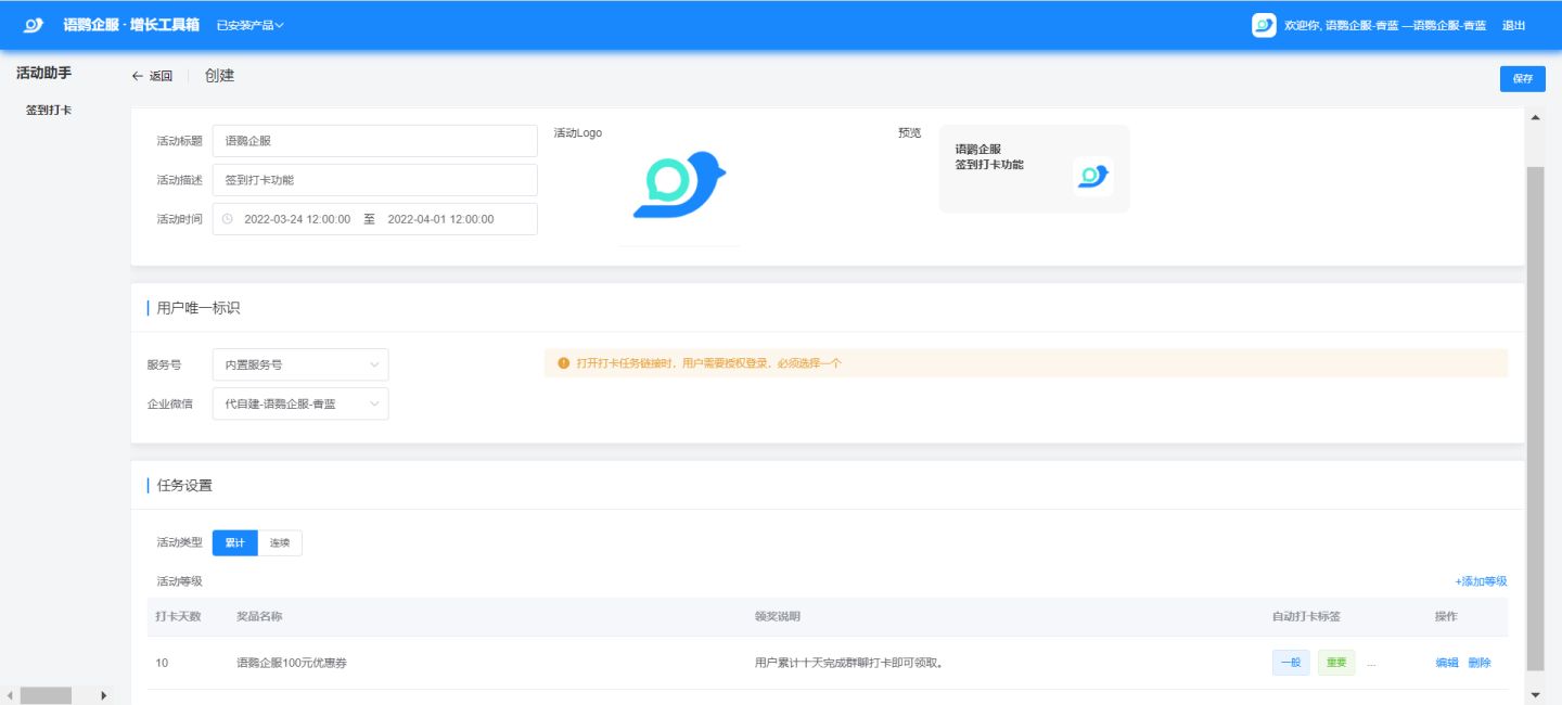 有效的群打卡活动对社群运营无疑是锦上添花,那么选择合适的群打卡工具也至关重要。语鹦企服 – [签到打卡] 功能正好可以满足群打卡的需求。