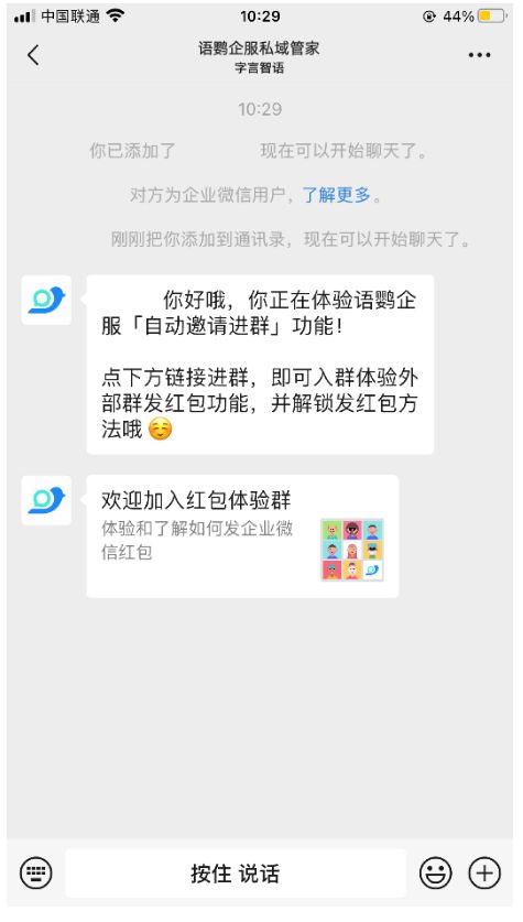 当客户通过扫描「员工活码」添加后即可自动发送进群邀请链接,即添加了企业微信也将客户邀请在了我们的社群内,实现了双重留存模式哦,可以更有效果的将流量沉淀在我们自己的私域中