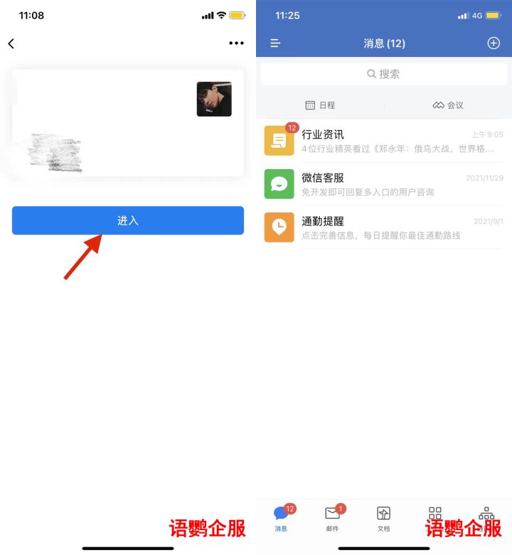 3.选择企业进入后,就可以进入企业微信界面啦