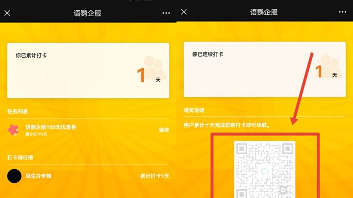 在企业微信社群运营中,如何更好地促进社群活跃及留存是不少企业的关心的运营问题。而举办企业微信群打卡活动可以有效地提高客户的参与感,激发客户的积极性及社群留存的有效办法之一。那么企业微信群打卡在哪里?完成打卡可以领取奖励吗?下面语鹦企服就带你来看看。