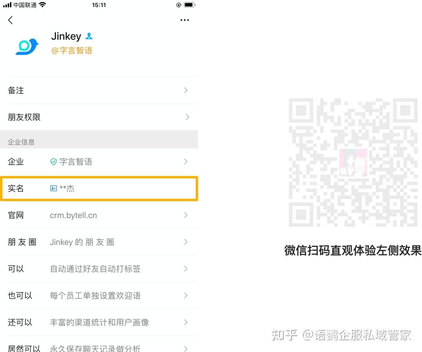 在个人信息安全紧张的现代,企业微信个人名片上公司、实名、手机等信息的露出,有利于提高用户对企业的信任度。