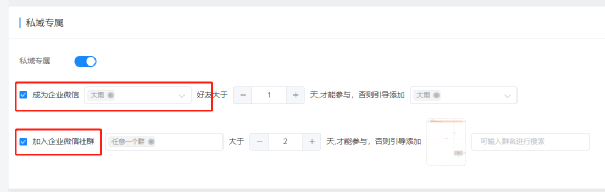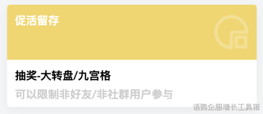 不仅如此,语鹦工具箱「抽奖」功能,作为企业微信私域抽奖工具,还支持「仅社群好友可抽奖」和「非企微好友不能抽奖」两类设置。其中「仅社群好友可抽奖」设置了参与门槛,既可以严防羊毛党,也可以为社群引流,获取更多新用户。