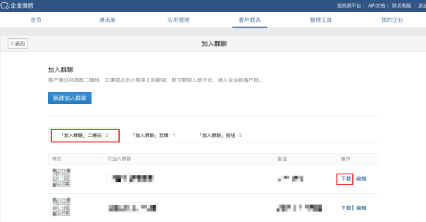 成功创建活码后,在「加入群聊」页面就可以找到你的企业微信群活码,点击「下载」就可以使用了。