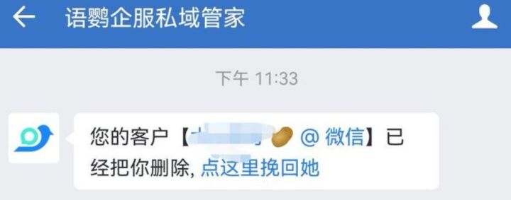 如果企业有清理僵尸粉客户的需求,推荐使用语鹦企服【用户流失】提醒功能,在用户删除你的第一时间发送系统消息提示你。