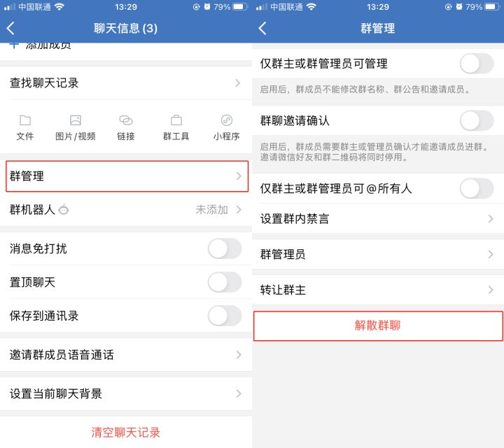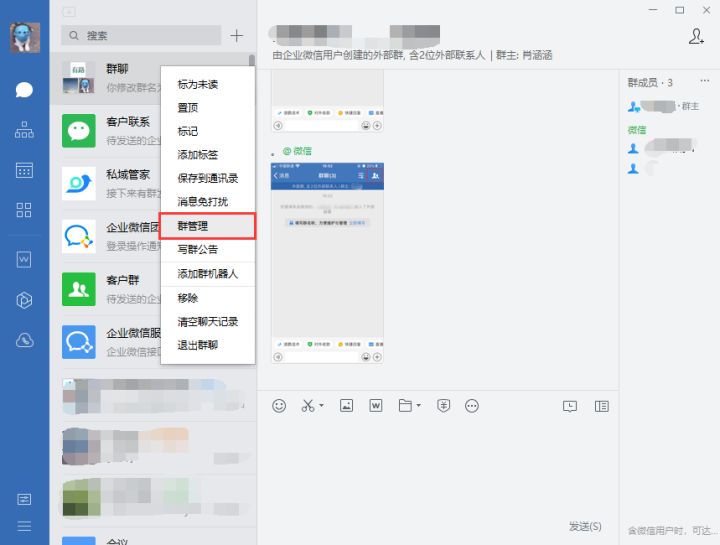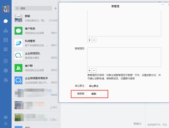 企业微信PC端则是右键点击群聊,选择群管理,然后再选择解散群聊