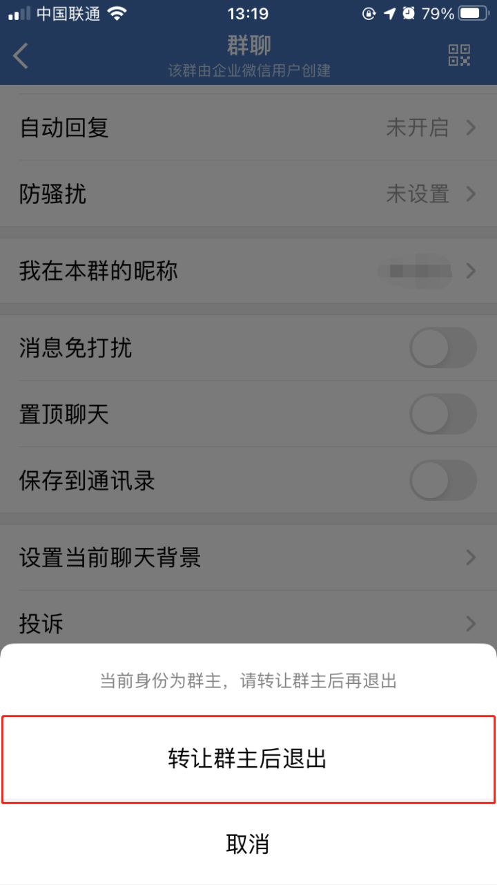 群主退出外部群和退出内部群的操作方法基本一致,但多了一个步骤,那就是退出群聊时需要将群主身份转让给另外一名成员,并且该成员必须是同企业并且具有客户群使用权限。这样退出群聊后,该群聊也不会解散。