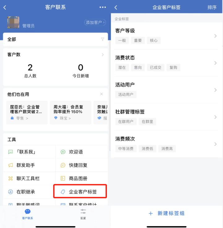 上面介绍的企业微信客户分类的方式需要员工手动给客户贴标签,如果客户规模大的话,员工操作起来很费时费力,而且容易出错。这个时候企业可以使用语鹦企服标签管理功能,可以根据渠道来源、消费频次等行为特点自动给客户打标签。