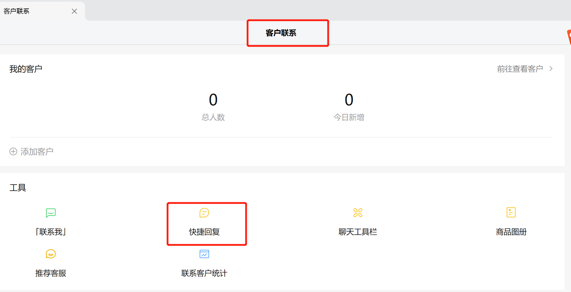 如果是员工自己创建快捷回复,可以选择【客户联系】-【快捷回复】,选择【添加快捷回复】就可以直接添加内容。