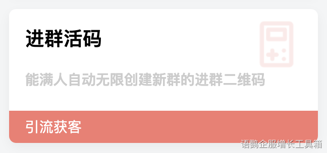 上面我们知道,企业微信群活码最多可以扫1000人,那我们在做大型营销活动时,想让单个群活码突破1000个人扫码入群的限制,可以怎么做呢?企业可以使用语鹦企服「进群活码」功能,可以自动更换群活码绑定的客户群,无上限创建新群,让群活码突破1000人扫码进群的限制。