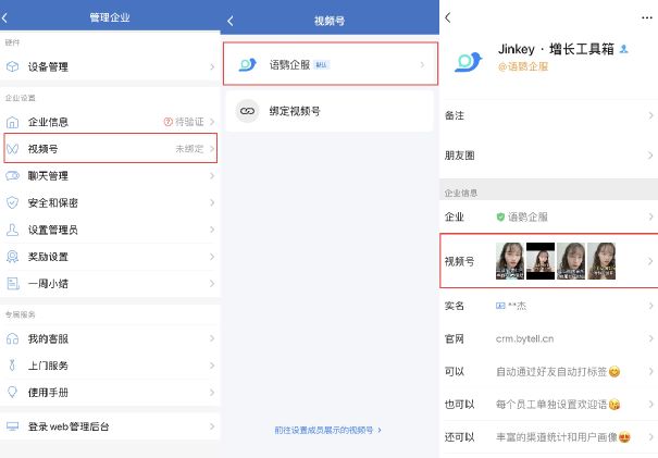 目前,企业微信支持关联视频号,企业可以在视频号发布视频内容,并将企业微信将视频号绑定,即可同步展示视频内容,客户也能从视频号主页添加企业微信,帮助企业将更多精准用户沉淀至私域之中。具体操作如下: