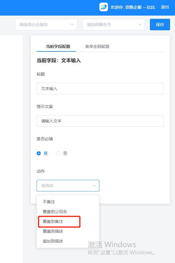 点击需要对用户进行标签的选项,在右侧的设置区中依次点击【动作-覆盖到备注】,就可以将在该信息栏中填写的信息自动覆盖到备注上,实现自动打备注的效果。