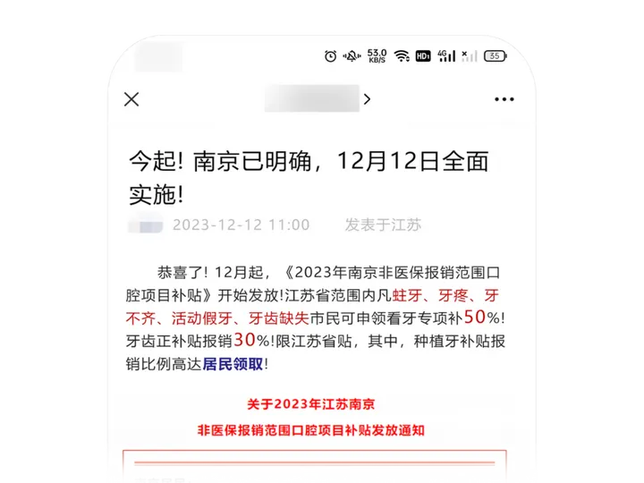一、标题隐藏关键信息,特地强调具体日期和地点以夸大紧急性与针对性,误导用户以为某地方政策于12月12号全面实施,而正文内容实则为商业种牙广告,且无任何限制日期