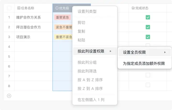 智能表格可按工作表、记录、字段来设置内容权限,防止内容被误改或泄露,多人协作更安全。