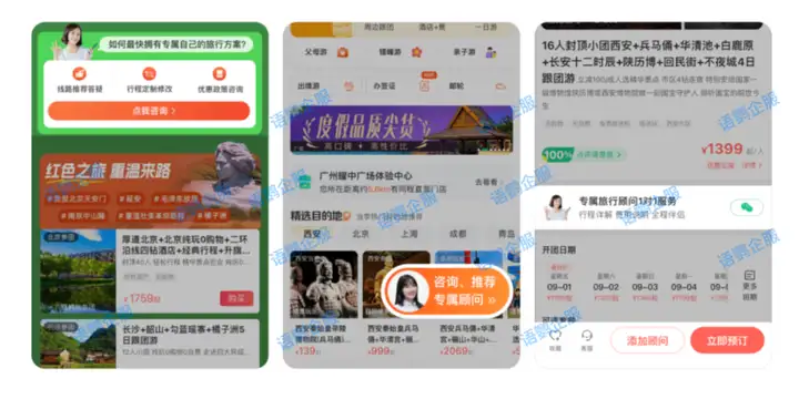 如同程旅行在其App中使用「获客助手」,客户点击即可1步添加旅行顾问,客户添加率提升了40%。