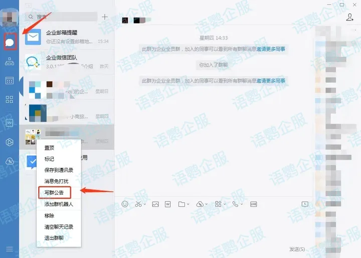 现在很多企业使用企业微信进行内部沟通和对外交流,而为了方便管理和沟通,通常会建员工群和客户群。与个人微信一样,企业微信群也有群公告功能,让企业发群公告通知所有人。那么企业微信群公告在哪里?企业微信群公告能批量设置吗?下面跟着语鹦企服来一探究竟吧。