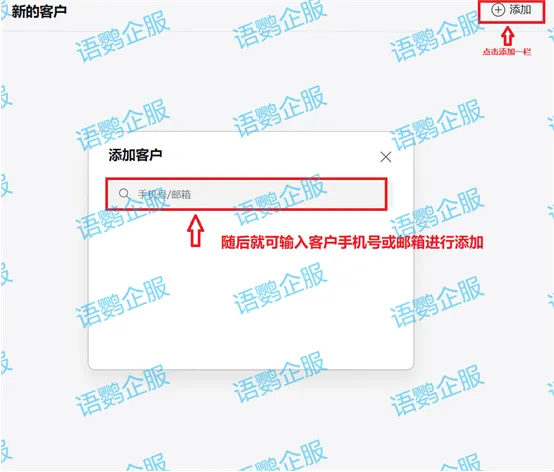 在熟练打开和使用企业微信之后,就需要进行“添加好友”这一步来进行拓客和引流。不同于微信的好友添加,企业微信的引流路程会稍显复杂一些。在电脑版企业微信左边的工具栏中找到「通讯录」一项,随后点击「新的客户」,再点击右上角的「添加」,就可输入客户的手机号和邮箱来将其加入到联系名单中,进行后续的组群与商洽。