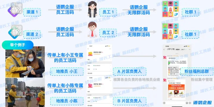 除此之外,“员工活码”所具备的“自动拉群”功能也是商家运营私域的一大利器。在自动添加好友之后,“员工活码”会自行向客户发送加群申请,而即使是同一客户,多变性的“员工活码”也可将客户引导进不同的渠道和用户池。针对企业的不同业务发展线,能够实现一个用户,多线程运营的情况。例如可将一个宝妈引流进“宝宝照顾福利群”、“宝妈沟通交流群”等,充分体察客户需求,挖掘多方价值。