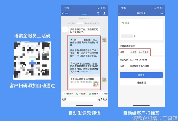通过语鹦企服工具箱的进群活码功能客户随时随地可以进群;其次,覆盖范围广泛,可以连通数百个微信群,为企业带来大量潜在客户,大大提升了运营效率。