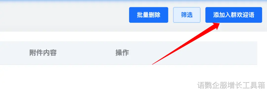 第一步:用户进入后台在增长工具箱找到【入群欢迎语】,点击【添加入群欢迎语】