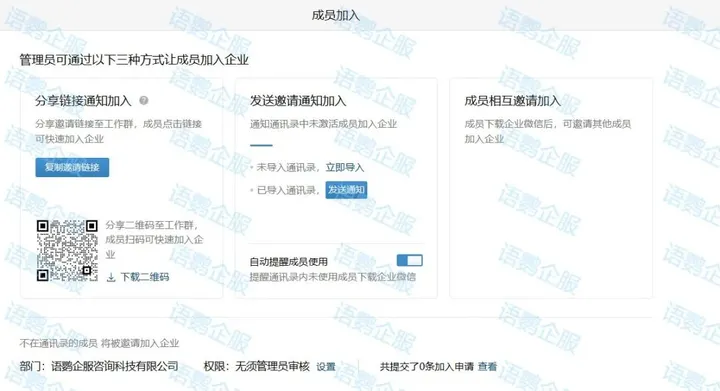 以上就是关于《企业微信不允许新成员加入怎么回事?企业微信禁止加人怎么解除?》的内容了。语鹦企服带您低成本玩转私域工具,快来解锁更多功能吧!更多私域玩法欢迎关注语鹦企服。