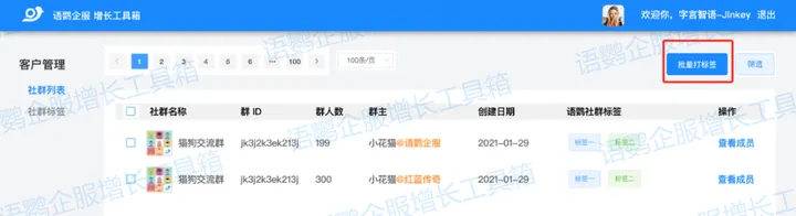 设置好标签后,你就可以开始将企业微信中的社群与这些标签进行关联。通过语鹦企服的「社群列表」功能,你可以轻松地给每个社群打上相应的标签,实现对社群的分类管理。