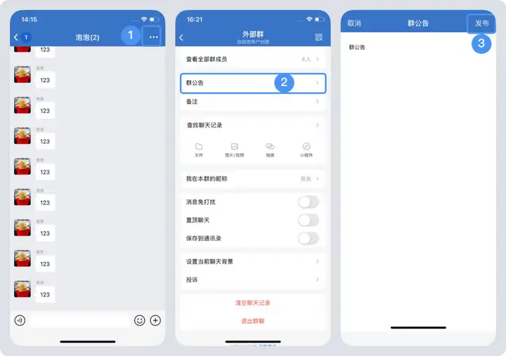 然而,对于外部群聊公告,企业群主或者群管理员设置的群公告而言是无法删除的,只有当群主或者管理员重新设置新的群公告后旧版本公告才会被顶替取代。