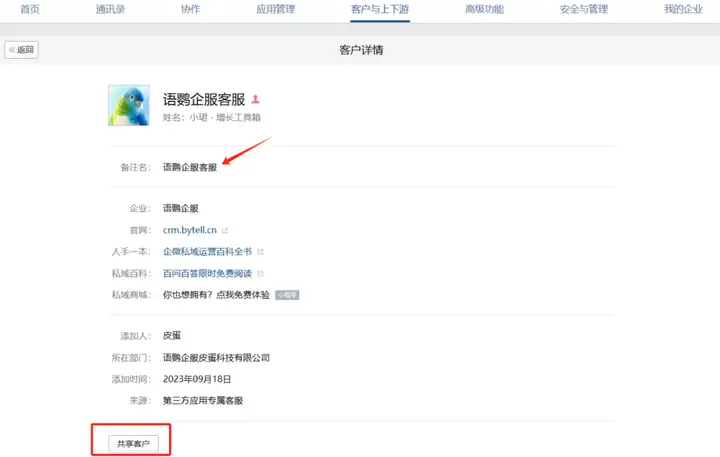 以上就是关于《企业微信从微信好友添加为什么不显示备注?企业微信添加备注谁能看到?》的相关内容了。借助实用性工具能提供精细化的客户运营方案以提高私域流量运营效率,同时,也能助商家进行高效的客户裂变策略,从而快速获取新客户。更多企业微信玩法,关注语鹦企服私域管家。