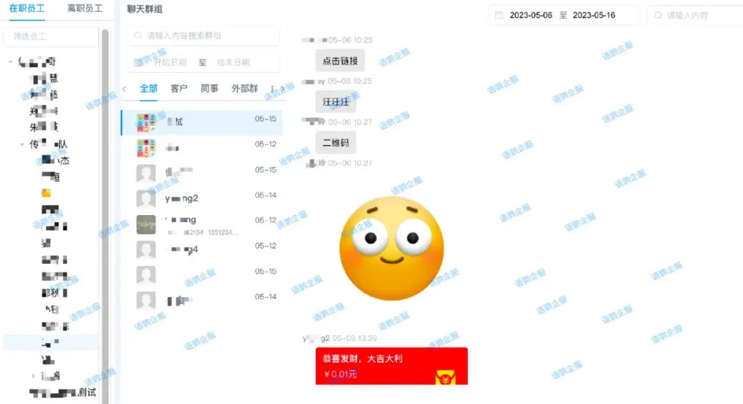 会话存档可以将企业微信的聊天记录进行备份,即使企业微信账号注销,你也可以在语鹦企服后台查看历史记录。这就像给你的企业微信聊天内容上了一个“保险”,即使账号意外丢失,你也能找回重要信息。
