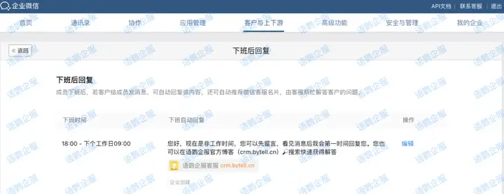 企业微信如何设置员工下班后自动回复?