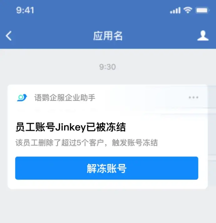 若以上方式验证无法成功,应及时联系官方人工客服进行反馈,同时及时联系企业微信管理员,通过语鹦企服工具箱设置冻结提醒,当账号触发删客事件时,自动冻结异常账号,防止进一步的客户流失、信息泄露和经济损失。