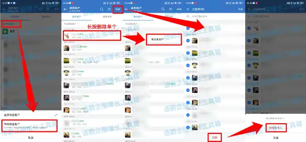以上就是关于《企业微信怎么看对方把我删了?企业微信单向客户怎么批量删除?》的相关内容了。虽然企业微信自身已经提供了批量删除功能,但使用第三方工具,例如语鹦企服等,仍然可以更便捷、更精准地进行客户管理。语鹦企服的“客户流失提醒”功能可以帮助企业及时了解哪些客户删除了员工,并提供更详细的客户信息和更有效的挽回策略。更多企业微信私域玩法,欢迎关注语鹦企服私域管家。