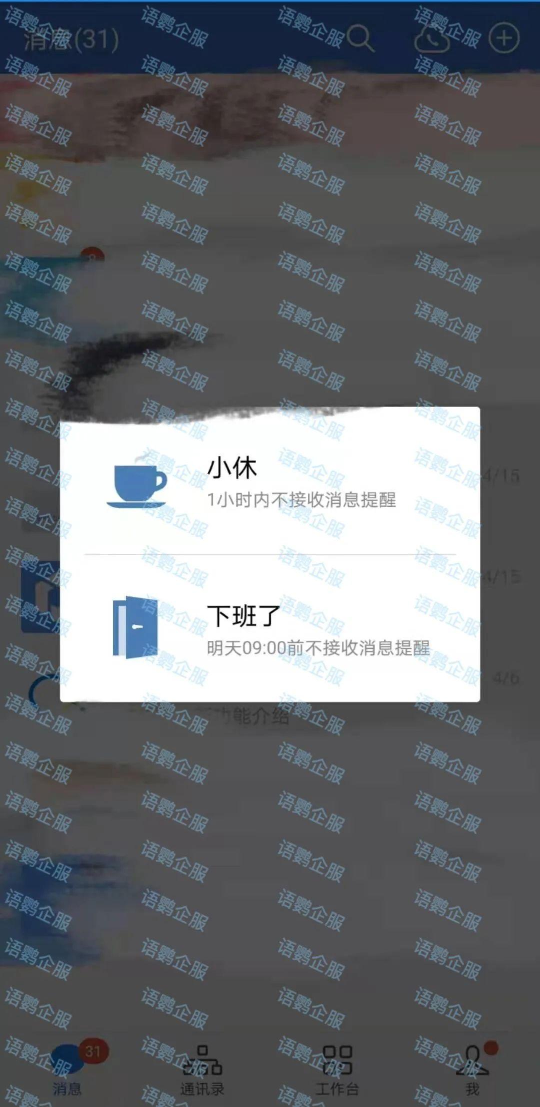 ②开启「休息一下」模式: 你可以将企业微信设置为「休息一下」模式,避免在非工作时间收到客户消息的打扰。