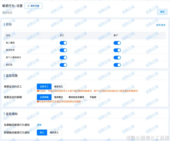 至于转发,情况则更加复杂。一般情况下,企业微信不会记录员工的转发行为,你转发消息就像一阵风,不会留下任何痕迹。但如果公司开通了“会话内容存档”功能,并且进行了二次开发,那么情况就大不一样了。这项功能就像一个强大的“监控器”,可以完整记录企业微信上的所有对话和操作,包括转发记录。语鹦企服作为专业的企业微信服务商,就能提供这样的会话内容存档功能,并且开箱即用,无需二次开发,帮助企业更好地管理和留存重要信息,追溯信息泄露源头。