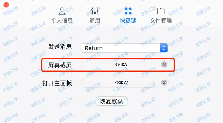 企业微信默认的截图快捷键是 Ctrl + Alt + A, 你可以通过这个快捷键快速截取屏幕上的内容。如果你觉得默认快捷键不顺手,也可以进行自定义设置: