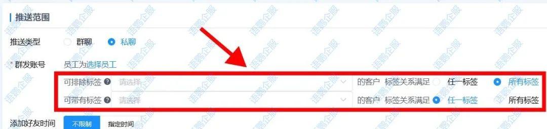 给客户分好标签组、打上对应标签后,企业可通过语鹦企服的【定时群发】功能给含有相同任一或所有标签的客户群体进行定时群发信息、推送营销活动,快速、精准触达用户,大大提升私域活动营销效率。