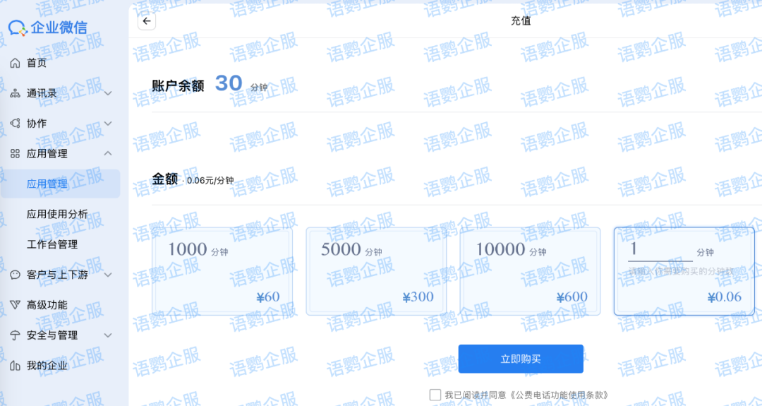 企业微信公费电话怎么充值?