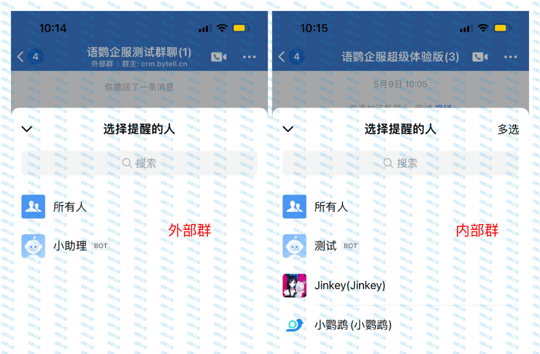 外部群的权限则更加严格,只有群主才能使用@所有人功能,且仅限在手机端操作。这种设计主要是为了防止频繁的全员通知影响客户体验,确保与外部合作伙伴沟通的专业性。
