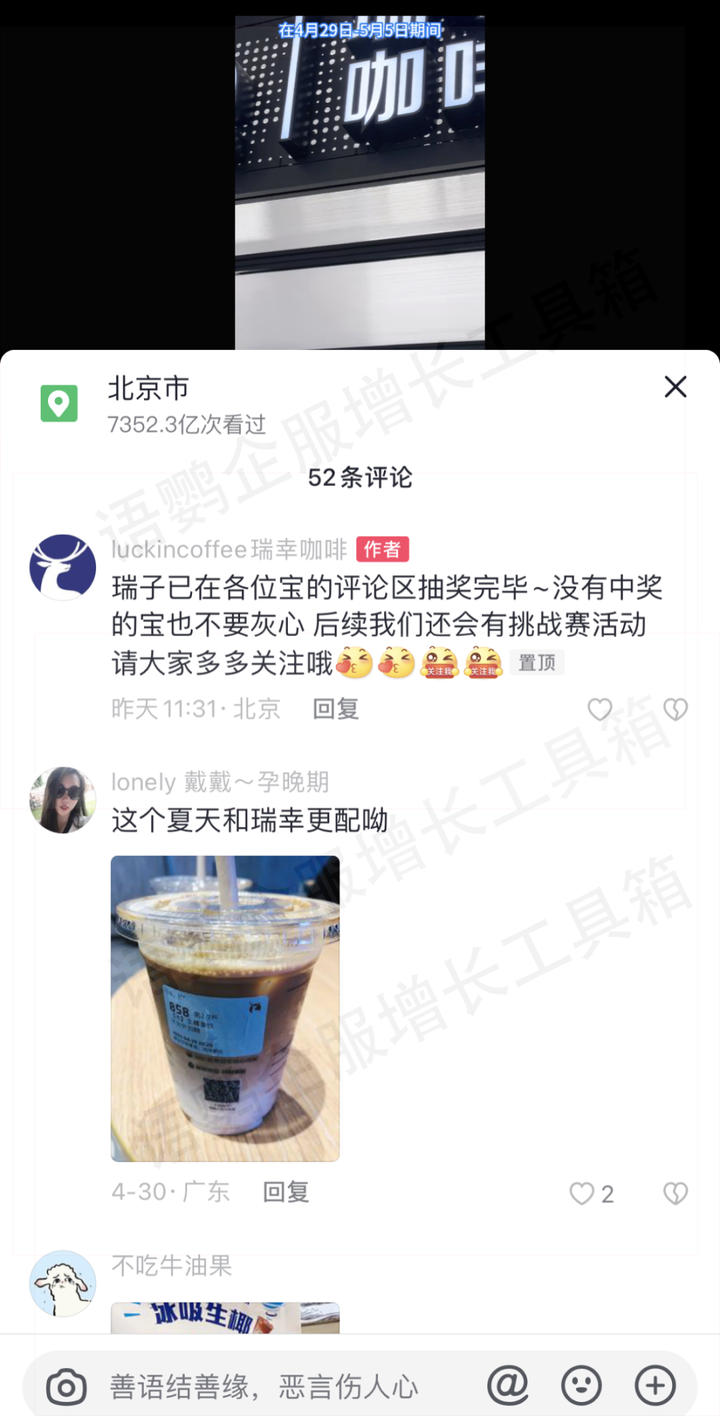 比如瑞幸咖啡在抖音上建立了自己的官方账号,他们的会通过发布优质的视频内容和文案,吸引抖音用户的关注。同时,他们还会在自己的评论区积极与用户互动,建立与用户之间的沟通和联系。