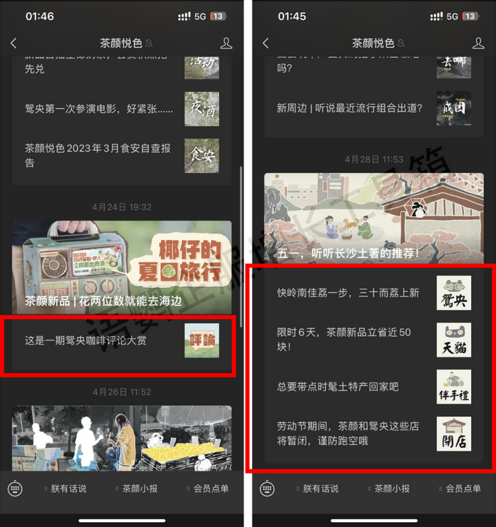 除了抖音之外,很多企业还会利用微信公众号作为自己的新媒体私域流量平台。比如茶颜悦色就是一家利用微信公众号建立私域流量池的典型企业。他们会在自己的公众号内推出优质的内容,比如新品推荐、优惠活动、周边产品、口碑评价等,并会搭配精美的排版和配图吸引大量的粉丝关注并留存。