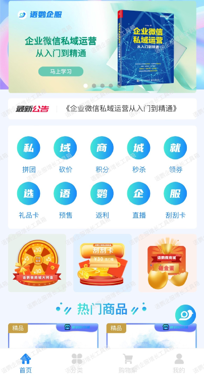 语鹦企服微商场内含秒杀、拼团、积分、会员等各种营销功能,客户可以直接在商场参与活动享受福利,同时还能起到裂变拉新的作用,与此同时,语鹦企服微商场还可以实行积分制,促进客户回购。可以实现更精准的用户管理和个性化营销。