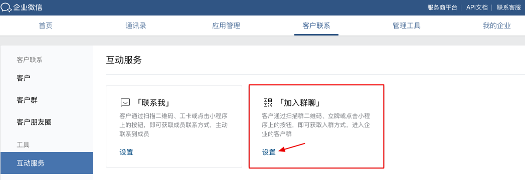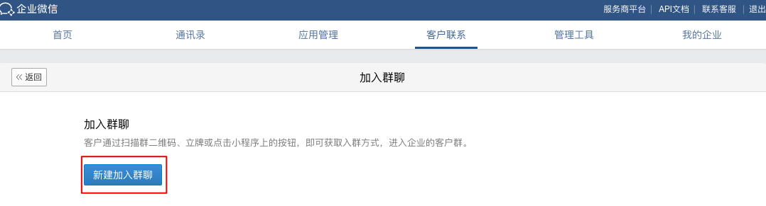 登录企业微信管理后台,依次点击【客户联系-互动服务-加入群聊-新建加入群聊-通过二维码加入群聊】