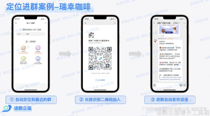 首先是引流沉淀用户,超市可以使用语鹦企服的【进群活码】功能,建立社群二维码,放置在收银台、冷柜、商品架上,引导顾客进群领券或者秒杀特价商品。对于全国连锁超市,在多个省市均有门店分布,且门店密度高,可以选择语鹦企服【定位进群】功能,可以设定门店周围一定半径范围的客户,将该范围内的客户拉进门店社群,进行精准获客,扩大超市门店客流量。