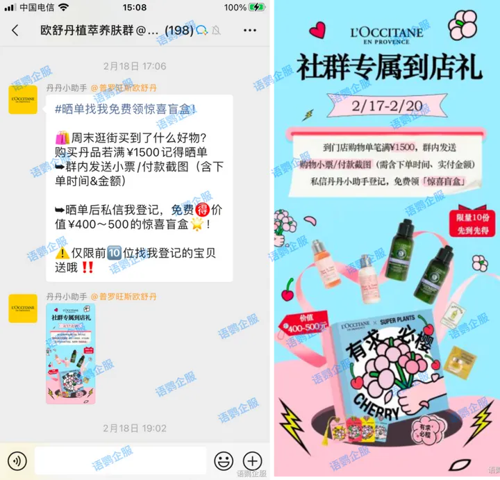 个性化营销:根据会员的喜好、需求和消费习惯,为他们推送个性化的营销信息。比如欧舒丹5月份时推送会员生日会活动时,在社群内推送生日祝福并提供专属优惠;对于喜欢购买新产品的会员,推送最新产品信息和专属优惠等。这样可以提高会员的满意度和忠诚度。