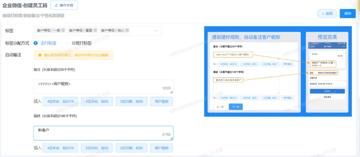 企业微信把添加好友的时间显示在名片上,但是通过语鹦企服的员工活码添加上的客户可以把添加日期备注到昵称上记录添加的时间。