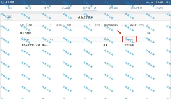 在管理后台的“客户联系”板块中,管理员可以清晰地查看“客户”列表。这里不仅展示了客户的基本信息,还细致记录了每个客户被添加的时间点。可以说,企业微信通过这一点睛之笔,提供了更为细致全面的客户管理功能,增强了客户关系跟踪的能力。