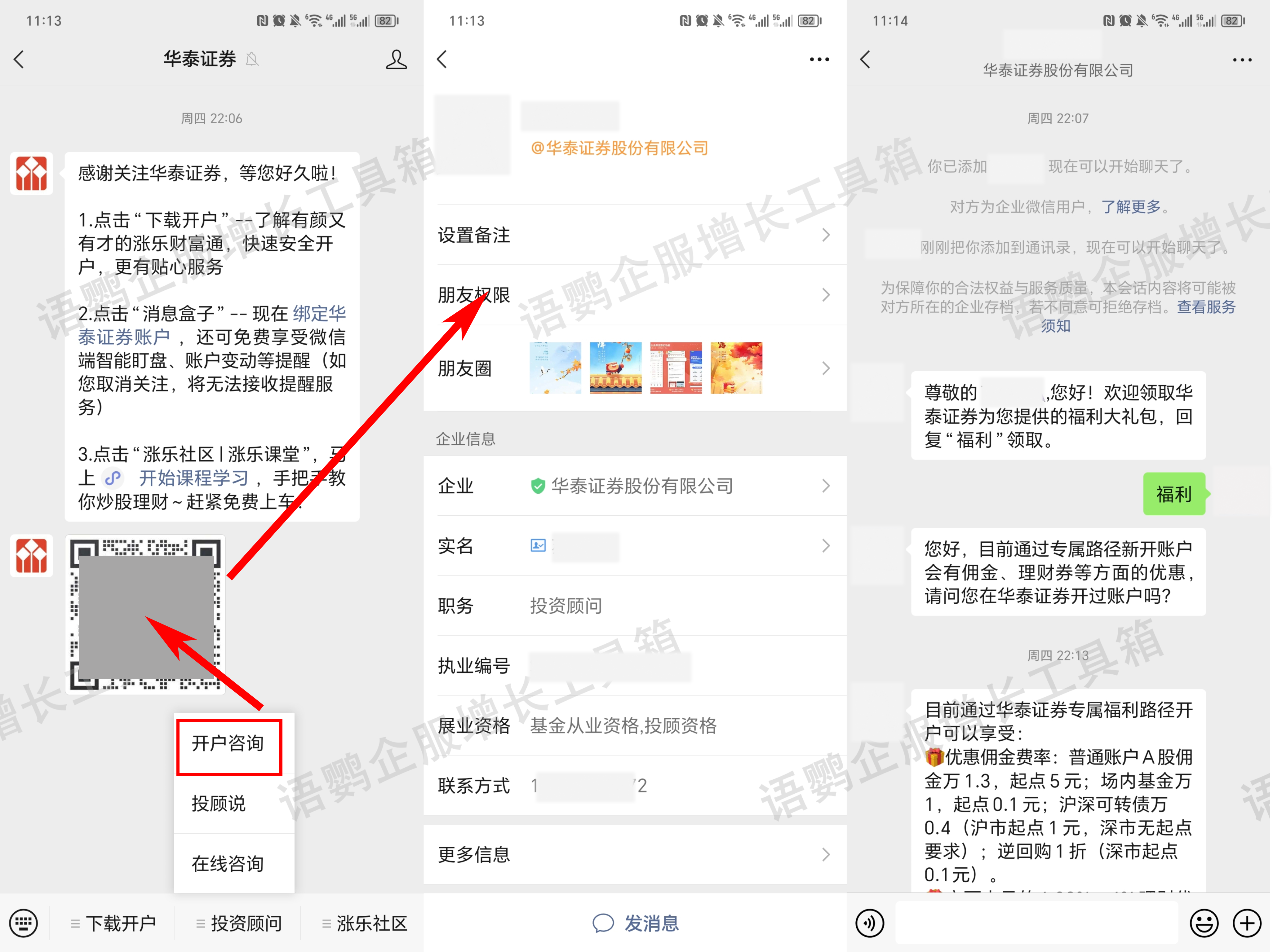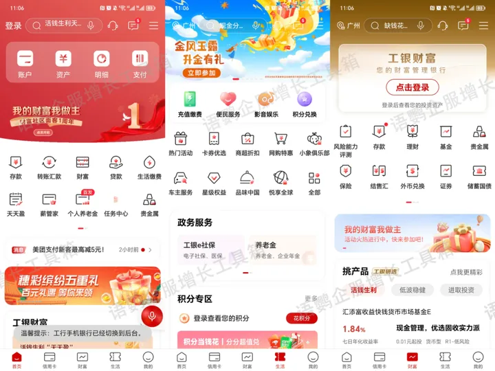 在金融领域中,无论是证券公司还是各大银行,基本都搭建了自己的私域矩阵,包括公众号、视频号、小程序、APP等,提供账目查询、理财投资、生活便民等服务。但经过语鹦企服的观察,遵循“线上引流→企业微信→深度服务”这一引流路径的金融企业目前还不算太多,更多的是在网点/线下积累客户添加个人微信。