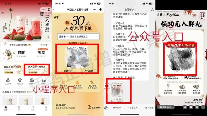 用户可以通过加入门店好友的方式,直接与实体店进行互动。消费者通过扫描门店的员工活码后,就会自动定位你所在的地区,古茗福利官会根据你的位置推送你附近门店的社群,进入社群后领取新人礼包。这就是古茗的门店定位加好友全流程~