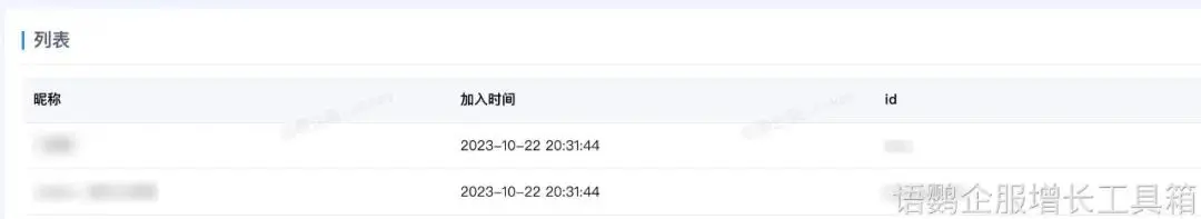 不仅如此,企业可以通过语鹦企服的「社群列表」详情页展开后可看到社群的成员列表和进群时间,也可以通过语鹦企服的「进退群分析」功能查看到群成员对进退群时间。